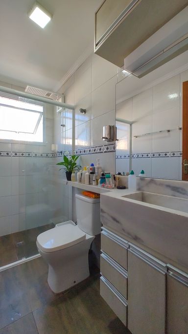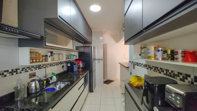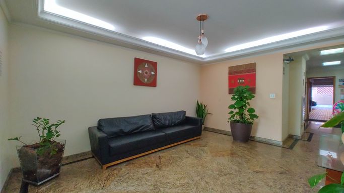 A área de lazer é completa: piscina adulto e infantil, sauna, espaço fitness, salão de jogos e salão de festas com churrasqueira a carvão.