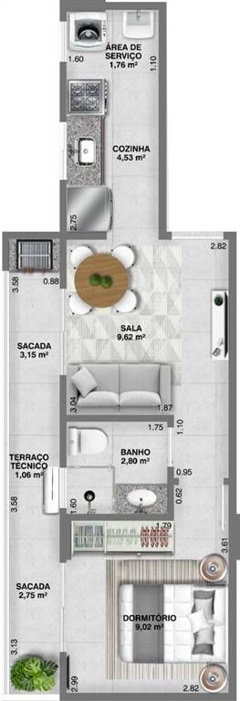 PET7756 - Apartamento Sendo: 1 Dormitório, 1 Vaga de Garagem,