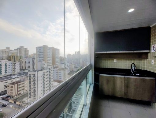 Apartamento alto padrão, com planejados, vista livre e sacada envidraçada no Canto do Forte!