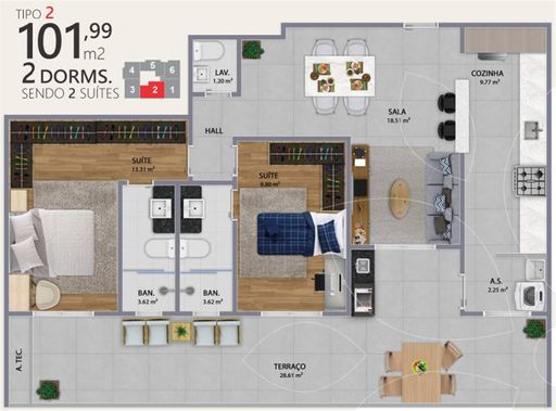 SMA35 - Apartamento Sendo: 2 Dormitórios, 2 Suítes, 2 Vagas de Garagem,