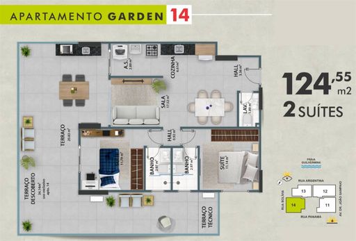 Apartamento Gardem com área descoberta privativa de 34,44 metros quadrados