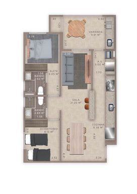 EM803 - Apartamento Sendo: 2 Dormitórios, 1 Suíte, 1 Vaga de Garagem,