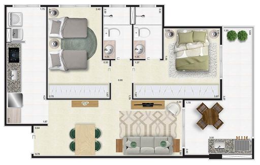 EM784 - Apartamento Sendo: 2 Dormitórios, 1 Suíte, 1 Vaga de Garagem,