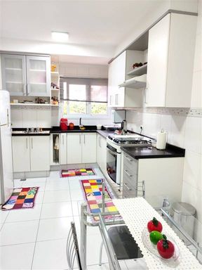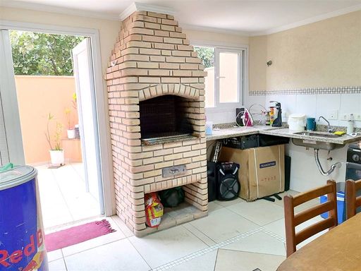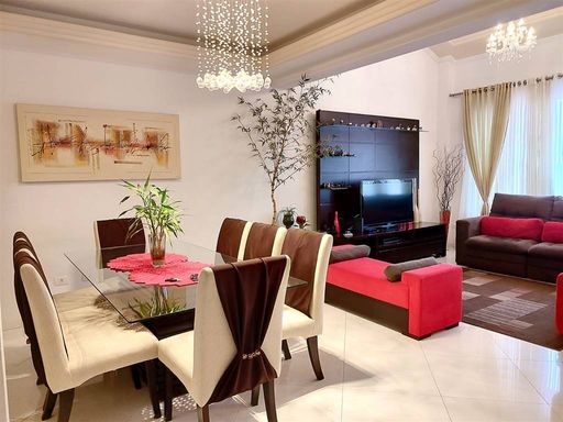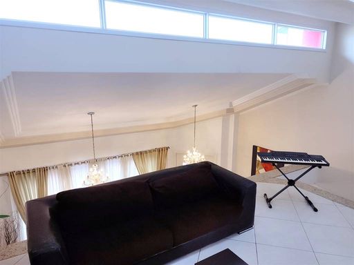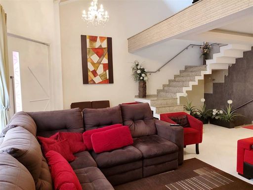 3 suítes, cozinha, lavabo, sala de estar e sala de jantar, área de serviço, mezanino, dependência de empregada, todos os banheiros com box, área gourmet com churrasqueira, garagem com vaga para 6 carros - 249 m² de área construída, pé direito 2,80 m e 3,00 m Porteira fechada, menos eletrodomesticos e itens pessoais.