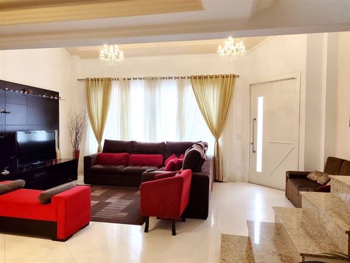 Aceita Financiamento Bancário 3 suítes, cozinha, lavabo, sala de estar e sala de jantar, área de serviço, mezanino, dependência de empregada, todos os banheiros com box, área gourmet com churrasqueira, garagem com vaga para 6 carros - 249 m² de área construída, pé direito 2,80 m e 3,00 m Porteira fechada, menos eletrodomesticos e itens pessoais.