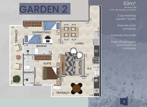 Apartamento Garden. 8 metros quadrados de sacada extra.