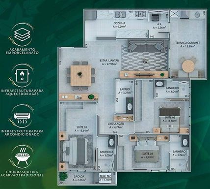 Elevador Social,Elevador de Serviço,Piscina,Piscina Infantil,Sauna,Salão de Jogos,Salão de Festas,Quadra,Espaço Kids,Espaço Gourmet,Academia
